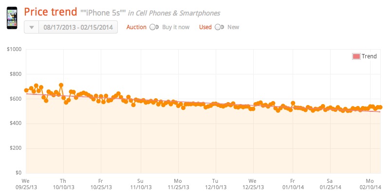 One of the most interesting searches we found was the price of the iPhone 5s, which has only lost around $50 of its value on the second-hand market in the last six months despite the release of the iPhone 5s and 5c in September.