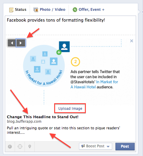 One of the greatest things about posting to Facebook is how many of the fields are totally customizable. Use this flexibility to highlight the most shareable elements of your content.