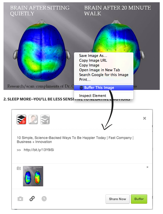 Pro tip: Install Buffer’s browser extension and right click on an image to add it full-size to your Google+ queue: