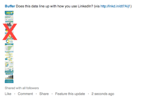 LinkedIn works well with most photos, but be careful when posting long visuals like infographics. Often it can be better for readability to take a screenshot of a portion for your update instead of posting the whole thing.