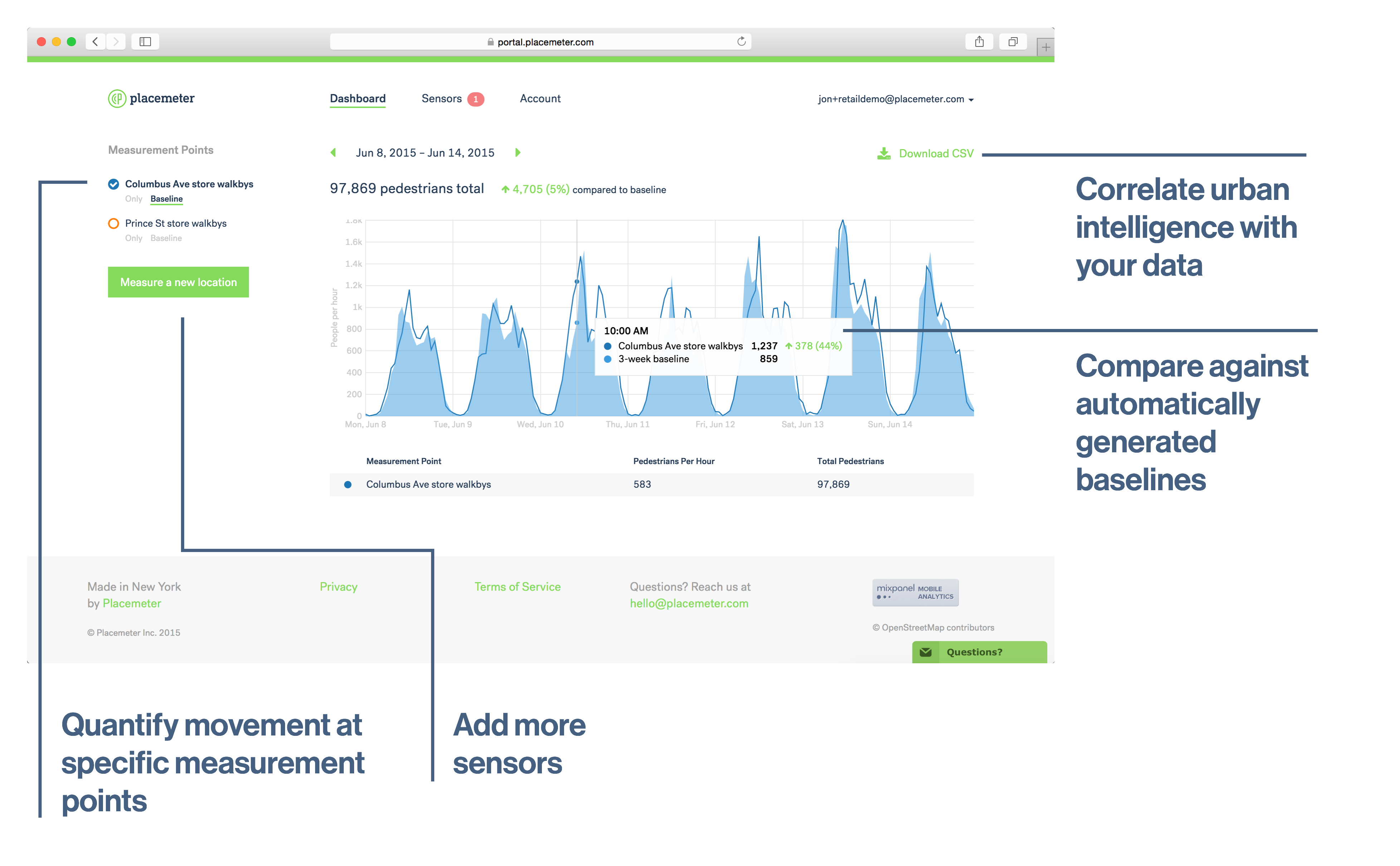 For businesses without the hardware to quantify its surroundings, Placemeter is also introducing the Placemeter Sensor. The discreet camera can be placed anywhere, and all video is processed locally to protect privacy.