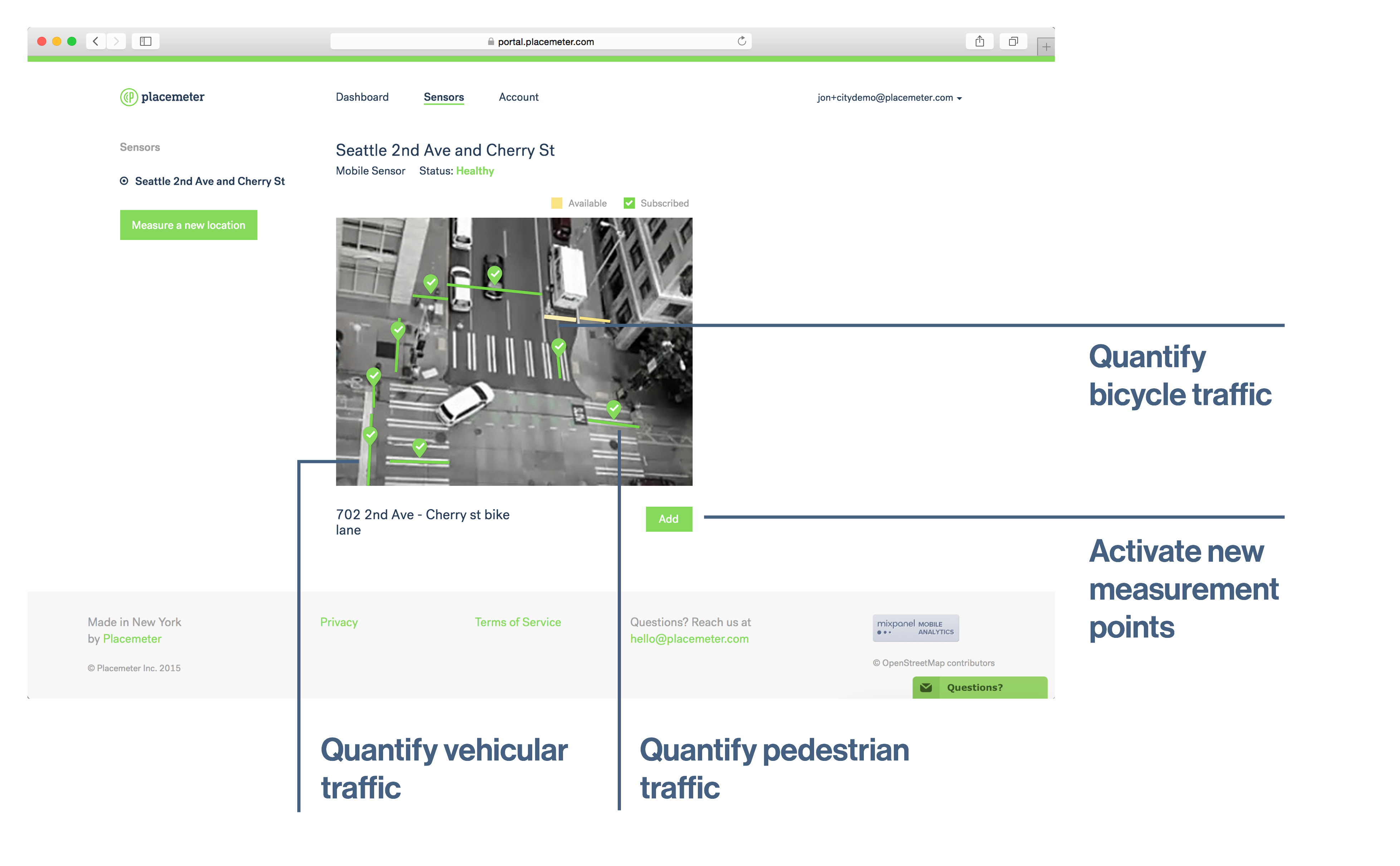 The only thing shared to Placemeter’s servers is the data gathered by the video monitoring; the service does not collect any video feeds.