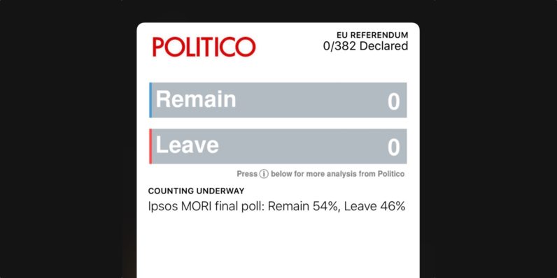 Want to track whether or not the UK will leave the EU, but don’t want to check Twitter or a Website every few minutes (we know you obsess!)? Politico has you covered — if you use an iPhone. After filling out a simple online information form, you’ll be able to add a pass to your iPhone’s Wallet app. All Politico wants to know is your name, email and country. The pass updates automatically throughout the day, so all you have to do is check it instead of Twitter or a Website. Rather than filter through a bunch of information you…