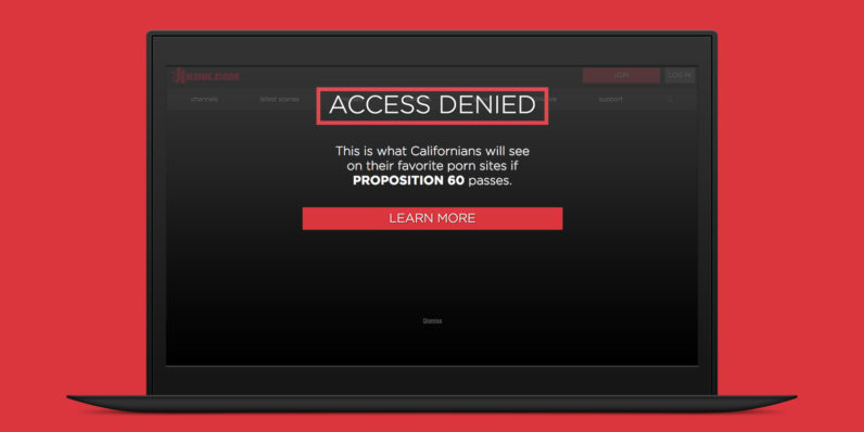 A proposed law in California could soon see all pornstars using condoms in their adult films. That doesn’t bode well for the industry, and a number of major studios and sites are protesting it by blocking access for visitors from the state. Vocativ reports that Vivid Video, Evil Angel, Kink, Pink & White Productions, and Treasure Island Media had begun locking out users visiting their site from California with a message urging them to vote no on Prop 60 yesterday. It’s just condoms, right? What’s all the fuss about? Well, Prop 60, which state residents will be able to vote…